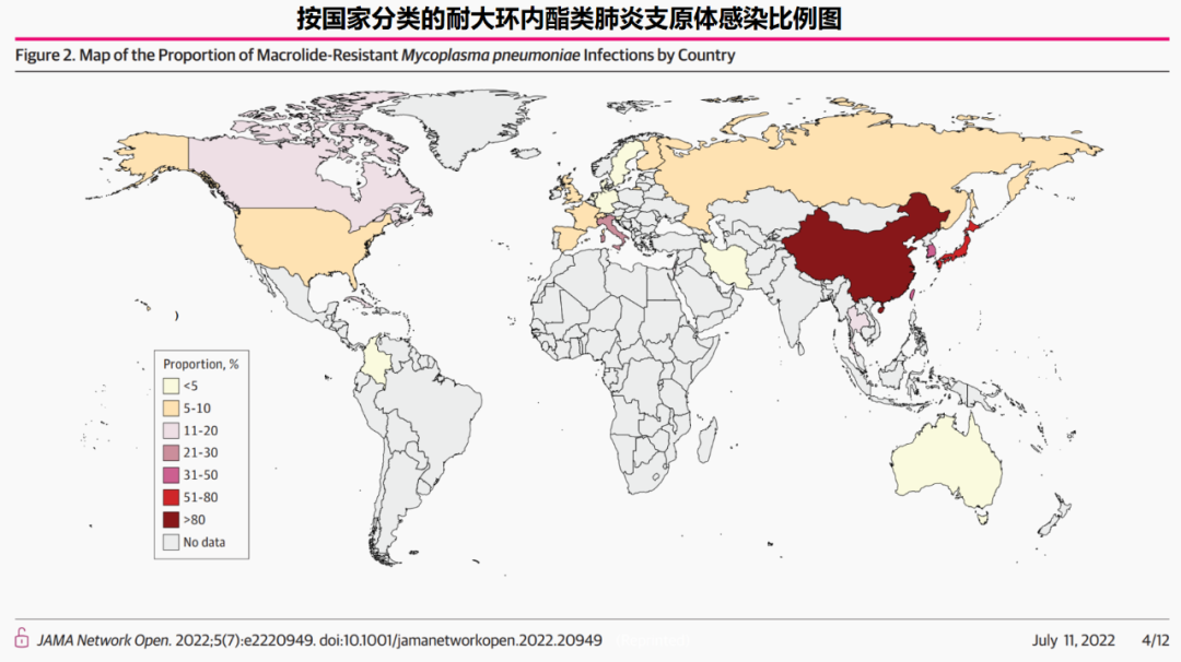 许多学者对大环类脂内抗生素耐药性进行了研究,《中华结核和呼吸杂志》中一项来自首都医科大学附属北京朝阳医院的研究表明,肺炎支原体对大环内酯的耐药率高达98%。2022年,《儿科药学杂志》中一项研究也显示,广州的患儿耐药率达68.1%,北京的患儿耐药率达87.7%。