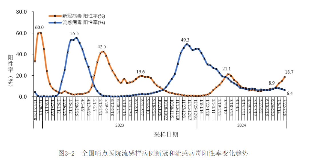 图|全国哨点医院流感样病例新冠和流感病毒阳性率变化趋势(源中国疾控中心网站)