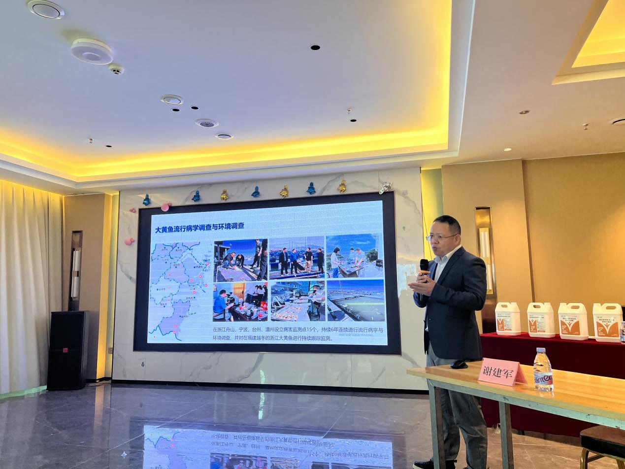 图|莱慎生物产品技术总监邓书香介绍大蒜E素在大黄鱼养殖领域的应用