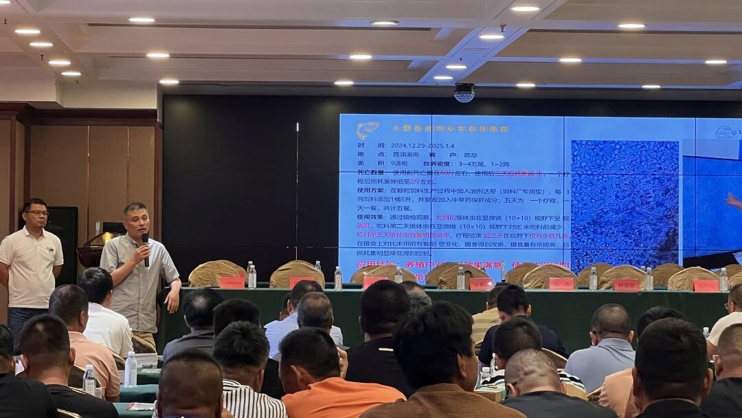 会前,莱慎生物技术总监邓书香向与会嘉宾介绍抗病原微生物新材料大蒜E素在大黄鱼养殖中防控锥体虫的应用,阐述了大蒜E素对锥体虫病“可防可控”及应用案例;莱慎生物浙江区域市场负责人焦晓峰向与会嘉宾分享象山、台州地区大黄鱼养殖主体应用大蒜E素产品防治大黄鱼锥体虫、大幅降低养殖损耗的成功经验。