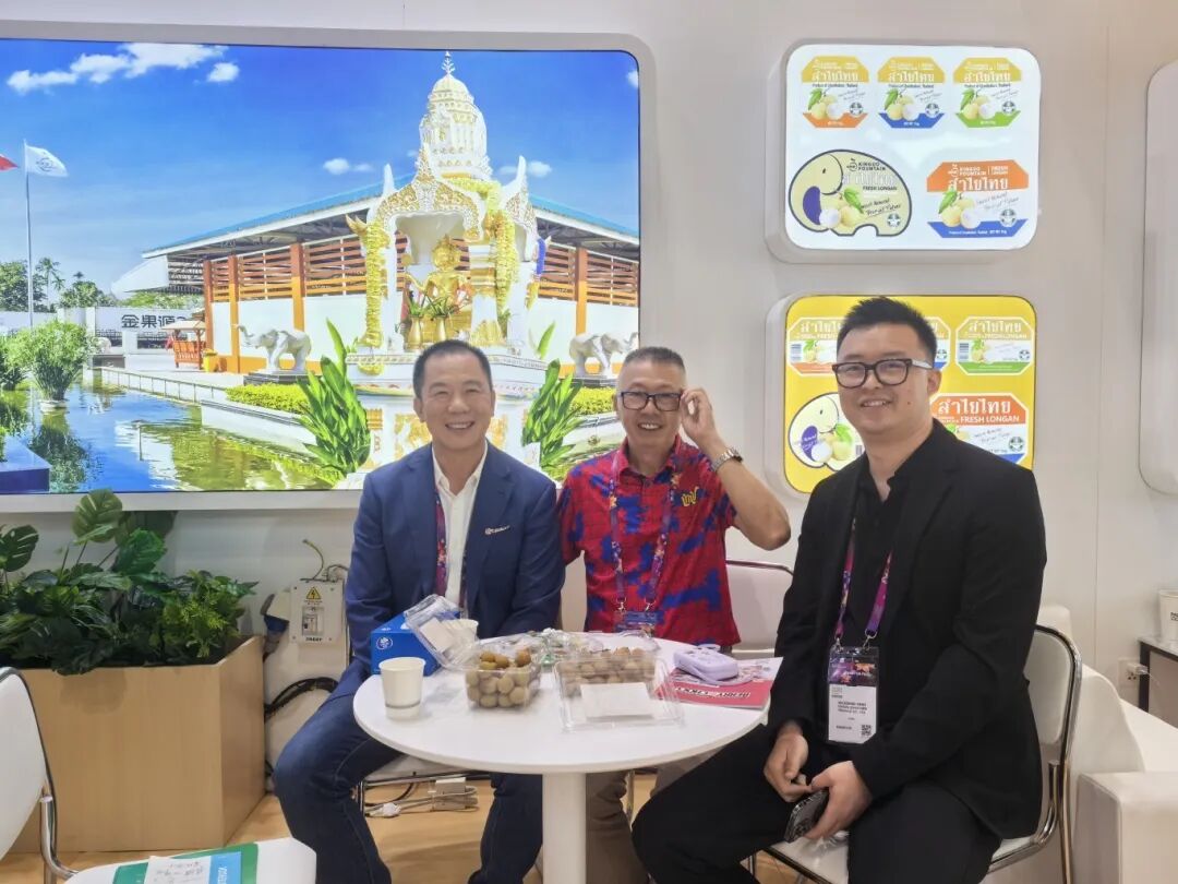 莱慎生物董事长林华利(左1)与年产10万吨级的泰国龙眼客户,