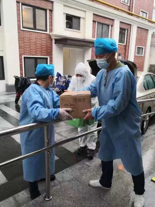 4月13日,通过莱慎生物领导的多方协调,团队克服各种困难,冒雨将一批优倍安消毒产品运送到了华康恒裕养护院。