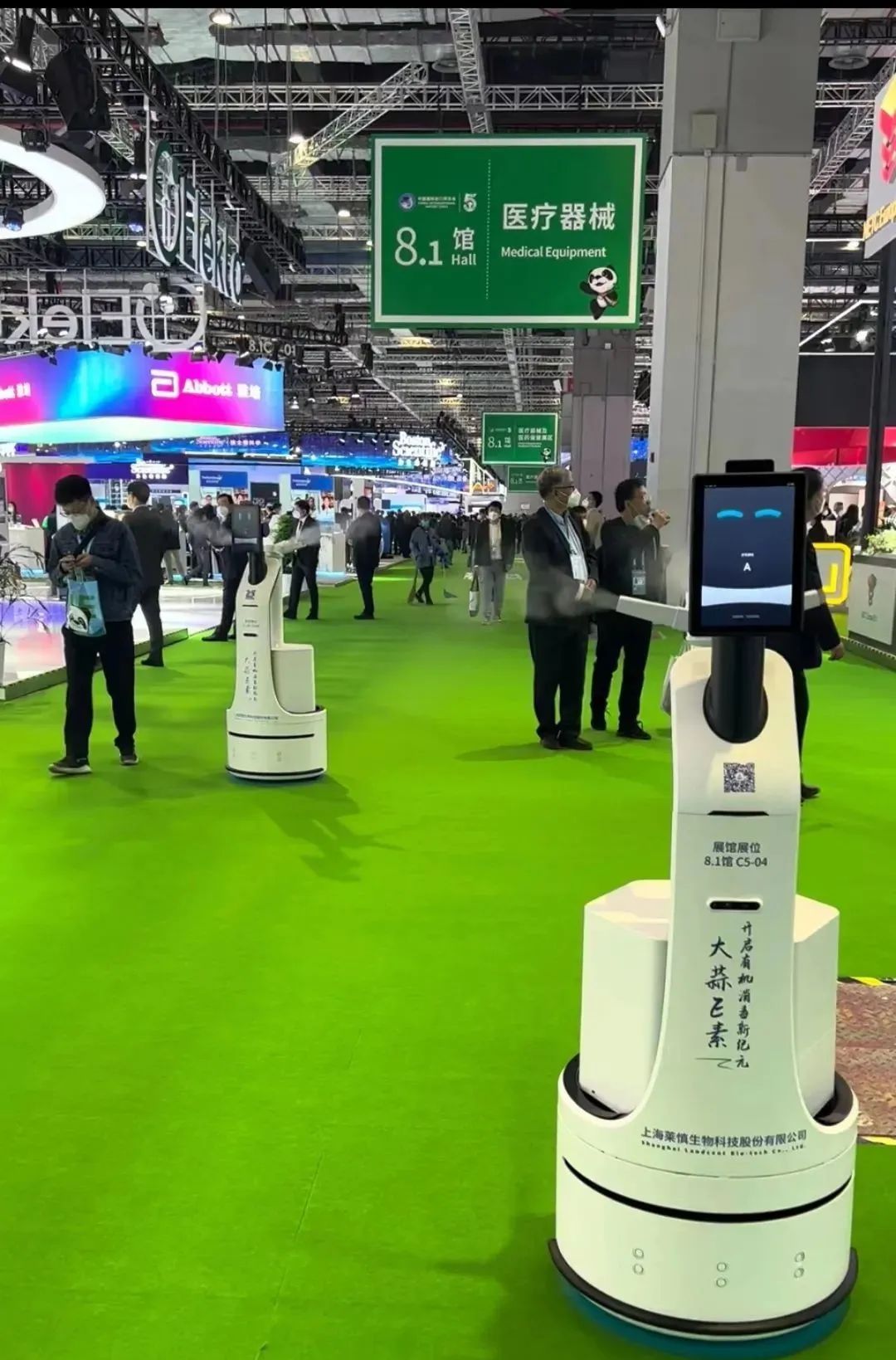 自莱慎生物推出空气雾化消毒机器人以来,市场反响热烈。从2022年9月起,莱慎生物就为第五届进博会办公区域提供消杀服务;2022年11月进博会期间,莱慎生物为四个叶片场馆内的通道步行街部署了13台空气雾化消毒机器人和8台空气雾化消毒器。