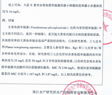 这一重要实验成果,验证了大蒜E素对鱼类养殖过程中抑菌杀菌的有效性和经济性,为践行国家农业农村部全面推行的饲料“禁抗令”、维护动物源食品安全和公共卫生安全贡献了有效、经济且绿色安全的解决方案。